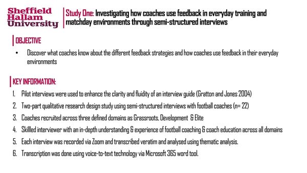 Study 1 - How coaches use feedback in their everyday coaching environments through semi-structured Interviews