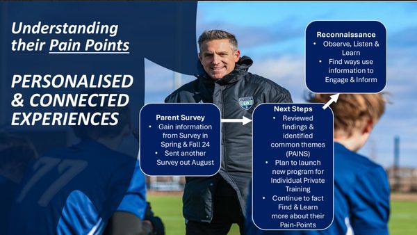 Gérard in his role as a Director of Coaching wanted to address the opportunity to engage and educate parents in the club coaching methodology, by sharing the science behind why we manipulate constraints & set challenges in game-like, inquiry based learning experiences to develop problem solving. This also presented an opportunity as parents preferred to pay for private training for their child outside of the club to specialist coaches which was a service the club didn't offer.