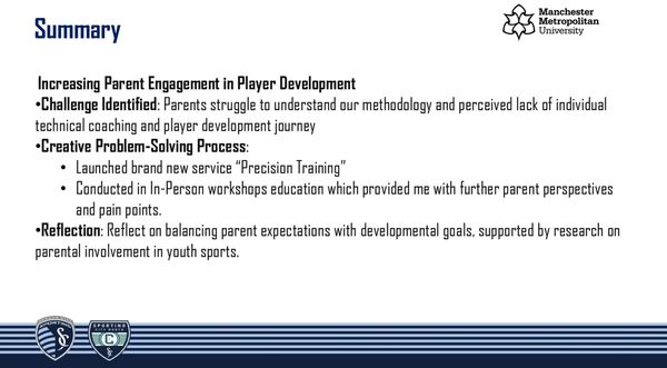 Increasing Parent Engagement in Player Development at MLS Sporting Kansas City - Owned & Operated Academy Affiliate, Sporting City North